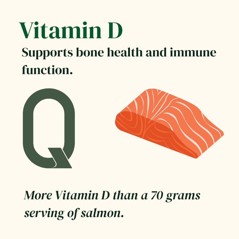 Our formulation provides 100% of your daily Vitamin D and B12 needs, helping your body thrive.